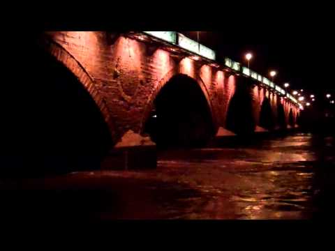 Tour Scotland Winter video shot tonight of heavy rain and the River Tay in spate by the he Old Bridge over the River Tay in