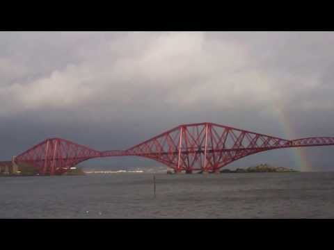 Tour Scotland video of a beautiful rainbow behind the Forth Railway Bridge over the Firth of Forth at North Queensferry, near