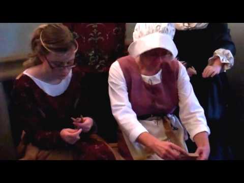 Tour Scotland short travel video of an example of Renaissance hand loom weaving on ancestry, genealogy, history visit and trip to city of Dunfermline, Fife. The Union of the Crowns ended the town's royal connections when James VI relocated the Scottish Court to London in 1603. The Reformation of 1560 had previously meant a loss of the Dunfermline's ecclesiastical importance. On 25 May 1624, a fire engulfed around three-quarters of the medieval-renaissance burgh. Some of the surviving buildings of the fire were the palace, the abbey and the Abbot's House. The decline in the fortunes of Dunfermline lasted until the introduction of a linen industry in the early 18th century. One reason for which the town became a centre for linen was there was enough water to power the mills and nearby ports along the Fife Coast. These ports also did trade with the Baltic and Low Countries.