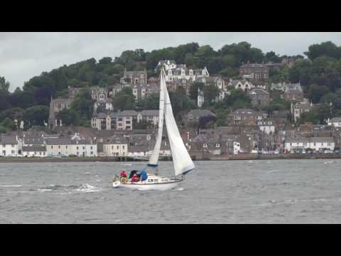 Tour Scotland travel video of competitive yachts in the Firth of Tay on ancestry, genealogy, family history visit and trip to Tayport, Fife. Tayport lies close to the north east tip of Fife. To the north it looks across the River Tay to Broughty Ferry and Broughty Castle.
