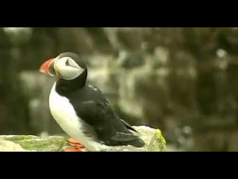 Tour Scotland travel video clip, with Scottish music, of Handa Island on visit off the West coast and waters of the Sutherland Scottish Highlands. The island's name is of mixed Gaelic and Norse origin and means " island at the sandy river " It had a population of 65 in 1841, but following the 1847 potato famine the inhabitants emigrated to Nova Scotia, Canada. In some ways this is surprising, since it is recorded that the islanders had a fairly varied diet including oats, fish and seabirds, rather than depending heavily on a potato crop. The islanders had a parliament, similar to that of St Kilda, which met daily, and the oldest widow on the island was considered its Queen. Anciently the island was used as a burial place, and there are still the remains of a chapel in the south east, commemorated in the name TrĂ igh an Teampaill. The use of Handa as burial place is thought to be due to the fact that wolves would dig up graves on the mainland so frequently that the inhabitants of Eddrachillis resorted to burying their dead on the island. Puffins annually migrate to Scotland, settling all over the country's rugged coastline from North Berwick in the Southeast to Handa off the coast of Sutherland and the Shetland Islands. Known affectionately by some Scot as the clowns of the sea, puffins typically arrive in Scotland in late March or early April. Scotland’s smallest and most distinctive breeding auk species with black upper parts and white under parts. Adults have a distinctive rainbow coloured deep bill as well as white cheeks and a conspicuous, clown like black stripe down over each red ringed eye. They nest underground in borrows.